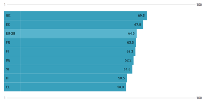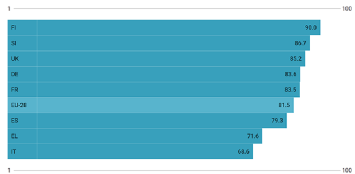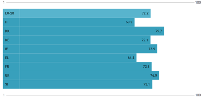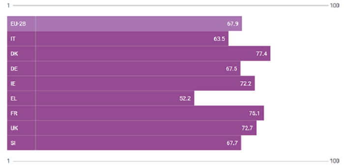 Index score for European Union 2020. Indicator that measures the complex concept of gender equality and based on the EU policy framework (EU 28 and some countries including Italy)