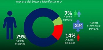 L’equità di genere non è solo un tema di diritti; dal G7 alla COP26 è emerso il concetto che non è possibile pensare ad una economia basata sulla sola presenza maschile. L’Osservatorio 4.Manager ha monitorato il numero di donne imprenditrici durante tutto l’anno con la conseguenza che oggi in Italia le posizioni manageriali femminili rappresentano il 28% del totale e si riducono al 19% se le attività sono regolate da un contratto da dirigente, con un incremento annuo dello 0,3% negli ultimi 10 anni. L’analisi elaborata su un campione di 6mila aziende manifatturiere italiane ha puntualizzato che il 14% sono a conduzione femminile e il 79% a conduzione maschile. Le imprese a guida femminile operano nel tessile per il 21% e si concentrano nel sud Italia per il 19%. Dall’Osservatorio emerge che le imprese femminili nel comparto manifatturiero hanno un basso tasso di innovazione ma una elevata propensione alla transizione sostenibile: solo il 12% delle imprese è innovativa contro l’88% delle maschili, mentre il 66% delle imprese femminili ha maggiore propensione alla transizione sostenibile contro il 34% delle maschili.