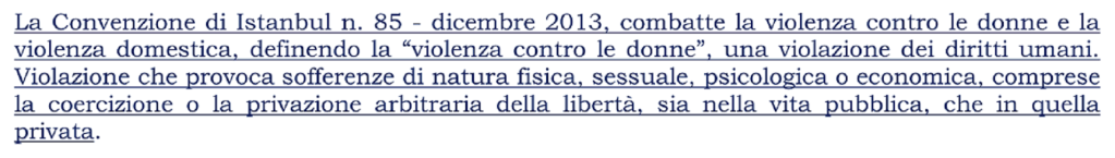 La violenza di genere regolata da convenzioni ONU e UE, con l’attuazione dell’Agenda 2030 per lo Sviluppo Sostenibile ratificata da 193 Stati delle Nazioni Unite, ribadisce l’impegno sul lavoro dignitoso, riduzione delle disuguaglianze, promozione della salute, benessere, eliminazione della violenza di genere e ogni forma di discriminazione. Per una sua piena applicazione è necessario accelerare su leggi, politiche, bilanci e istituzioni, per le quali si chiede un maggiore investimento sulle statistiche di genere poiché è disponibile meno della metà dei dati per monitorare il Goal 5.