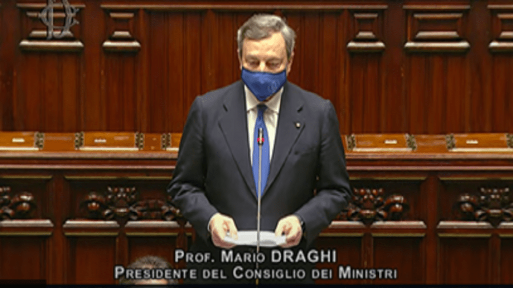Il suo pensiero va alla responsabilità nazionale e al dovere di combattere la pandemia per salvaguardare la vita dei cittadini. “Una trincea” dice “dove combattiamo tutti insieme: il virus è nemico di tutti, ed è nel commosso ricordo di chi non c’è più che cresce il nostro impegno” ha dichiarato. Poi aggiunge “whatever it takes” per promuovere il capitale umano, formazione, scuola, università e cultura. Dare risposte ai giovani costretti ad emigrare per lavoro e realizzare un’effettiva parità di genere. “Il Governo” ha ribadito Draghi “nasce nel solco dell’appartenenza del nostro Paese, come socio fondatore, all’Unione europea e come protagonista dell’Alleanza atlantica, nel solco delle grandi democrazie occidentali a difesa d’irrinunciabili principi e valori”. “Sostenere il Governo” ha specificato “significa condividere l’irreversibilità della scelta dell’euro e la prospettiva di un’Unione europea più integrata che approderà a un bilancio pubblico comune, in grado di sostenere i Paesi nei periodi di recessione.
