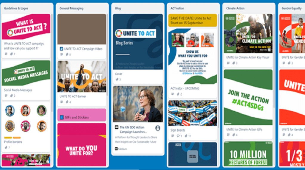 “UNITE TO ACT fa appello ai partner del mondo affinché contribuiscano a spingere sugli SDG nella vita reale di tutti”, così ha dichiarato Marina Ponti, Global Director della UN SDG Action Campaign. “Le attuali sfide trascendono dalla singola persona, governo o organizzazione; siamo impotenti come singoli individui, ma insieme siamo più forti”.