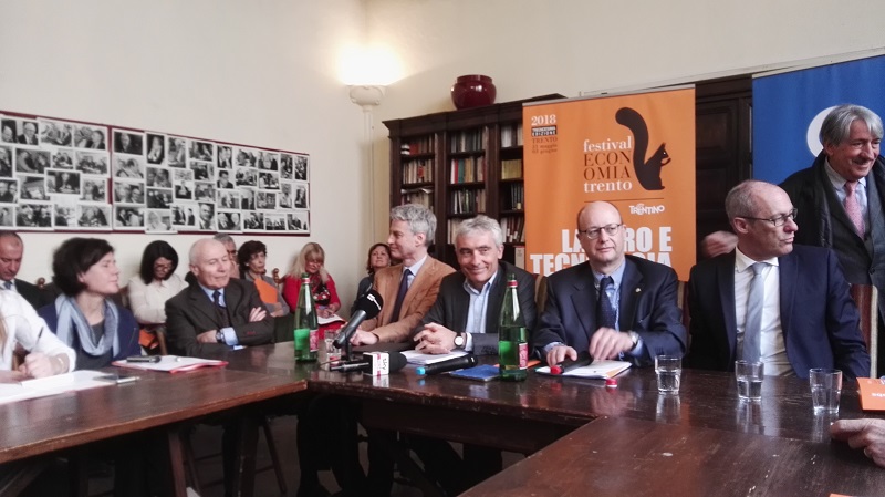 Le tecnologie aiutano ad arricchirci o produrranno riduzione di posti di lavoro? Cosa ci resterà da fare quando saranno le macchine a lavorare e guadagnare? Questi alcuni degli interrogativi discussi al Festival dell’economia 2018, che si terrà dal 31 maggio al 3 giugno a Trento. L’intera kermesse, giunta alla tredicesima edizione, dedicata al “Lavoro e tecnologia”, è stata presentata lo scorso 18 aprile a Roma nella sede della Casa Editrice Laterza, dal presidente della Provincia autonoma di Trento, Ugo Rossi, dall’editore Giuseppe Laterza, dal rettore dell’Università di Trento, Paolo Collini, dal presidente dell’Università di Trento, Innocenzo Cipolletta e dal direttore scientifico del Festival, Tito Boeri.